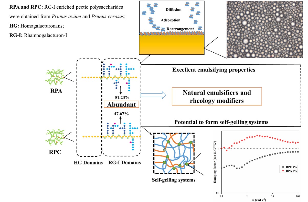 近日,食品科学与工程学院吴澎教授团队在《Food Hydrocolloids》在线发表了题为“Structural, rheological and emulsifying properties of RG-I enriched pectins from sweet and sour cherry pomaces”的研究论文。张士凯博士为该论文的第一作者,吴澎教授、艾仕云教授和Dongxiao Sun-Waterhouse教授为该论文的通讯作者。